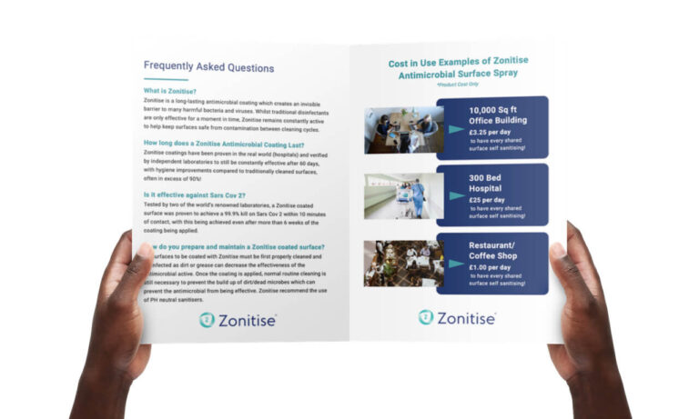 Edward from Zonitise came to us looking for a leaflet design and print for an upcoming trade fair. The leaflet was to promote their antimicrobial services to potential clients. They were to be handed out throughout the fair. They needed to look professional and convey all the relevant information. The leaflets had to be designed, printed, and delivered to their office in preparation for the event.